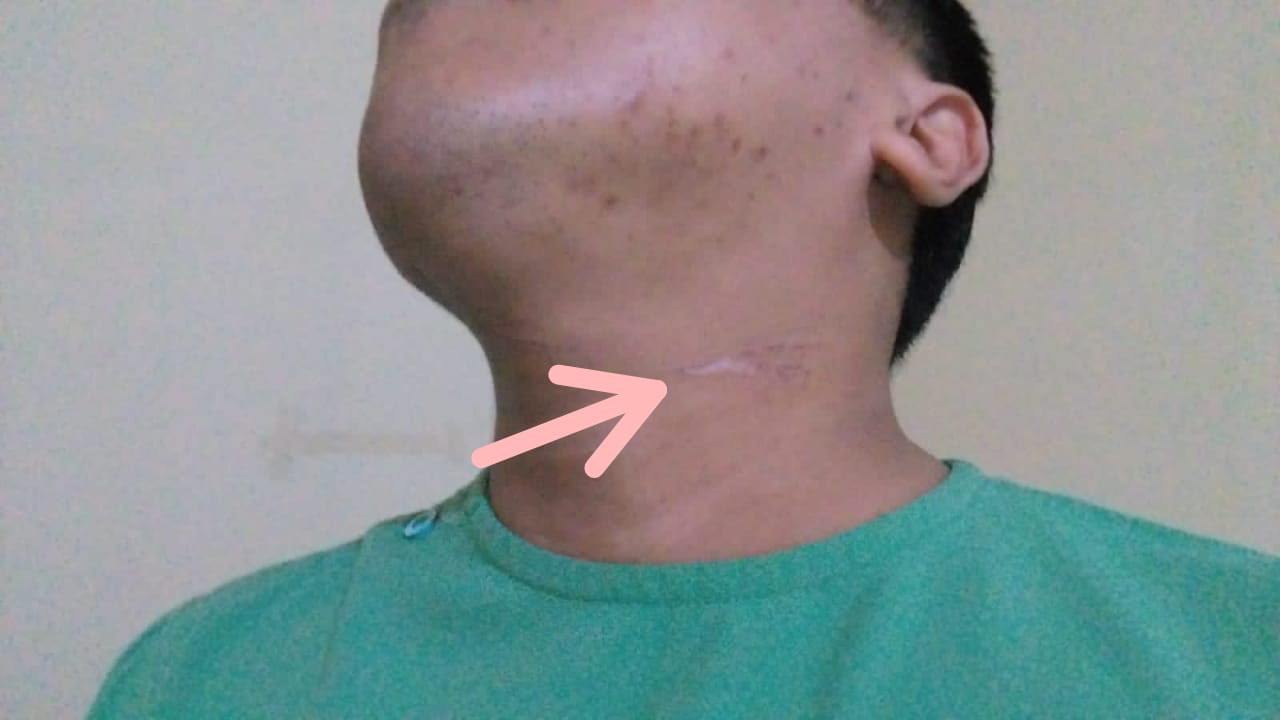 Korban pun mengalami luka sayat, kemudian ke rumah sakit umum untuk mendapatkan perawatan, ada 6 luka robek di jari tangannya dan dijahit.