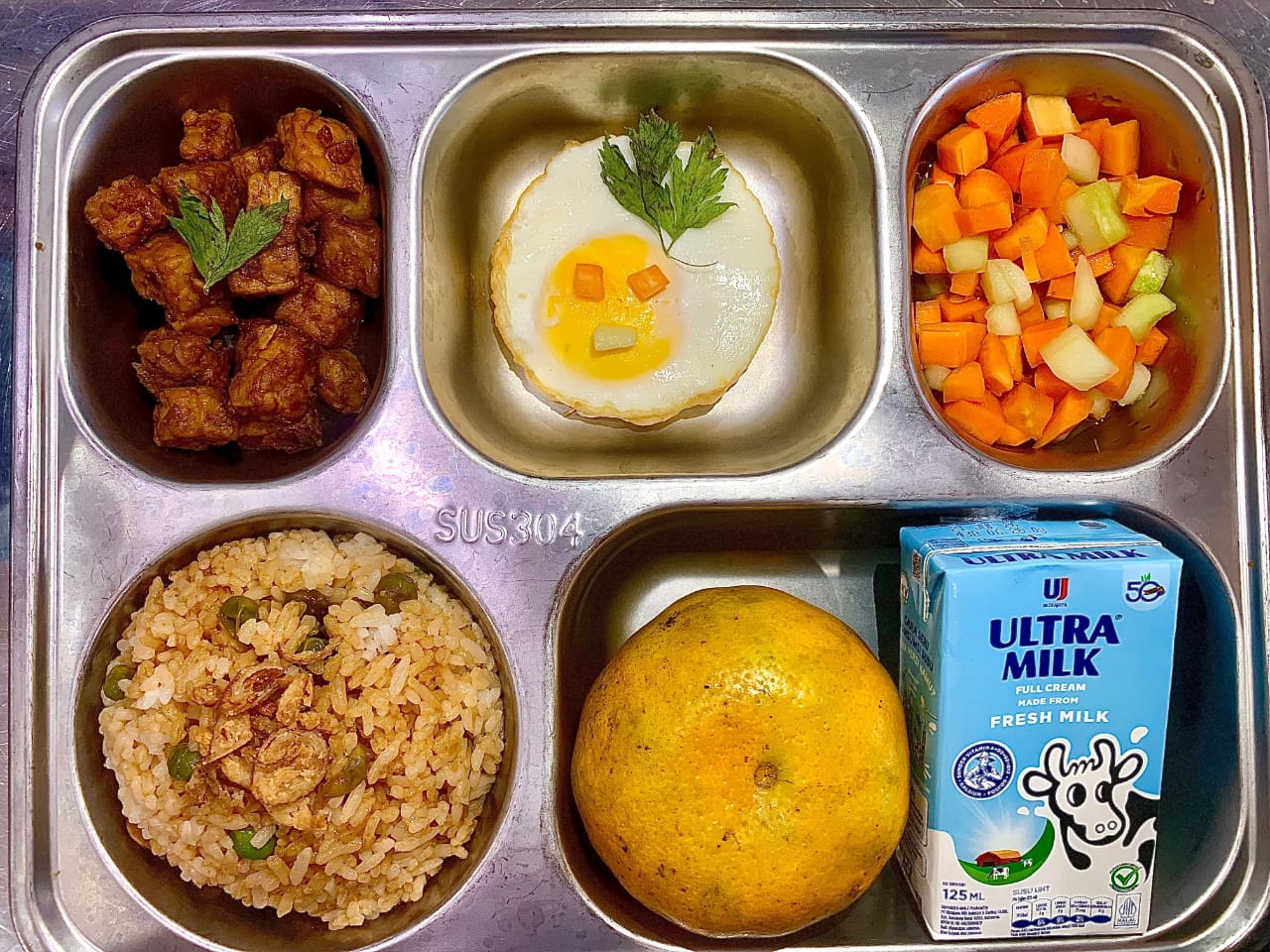 Menurut Mila, hari ini memang seluruh SPPG se Indonesia menunya sama, nasi goreng.